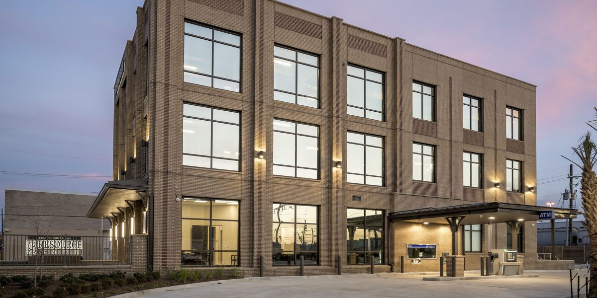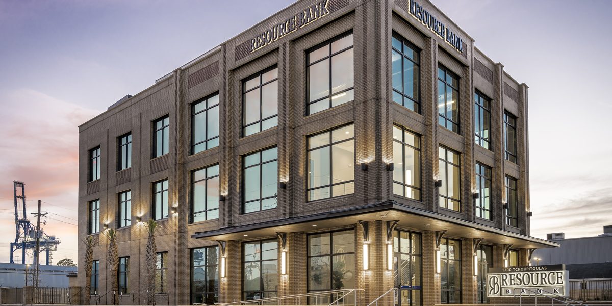 VergesRome Architects served as Architect of Record for Resource Bank’s main Southshore location, an 18,000 SF new construction branch strategically located at the high-visibility corner of Tchoupitoulas Street. This relocation from Downtown New Orleans marks a significant expansion of the bank’s presence, with this building serving both its commercial client banking and commercial lending divisions.
