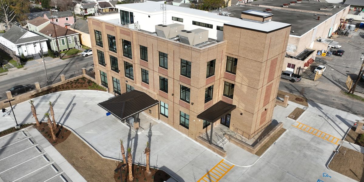 The site, once a vacant lot, now supports stormwater management through permeable paving in the parking areas. Close coordination with the client throughout the design and construction process ensured the final result was aligned with their operational needs and long-term vision. The project also required engagement with the State Historic Preservation Office (SHPO), as the site borders the Uptown New Orleans National Historic District.